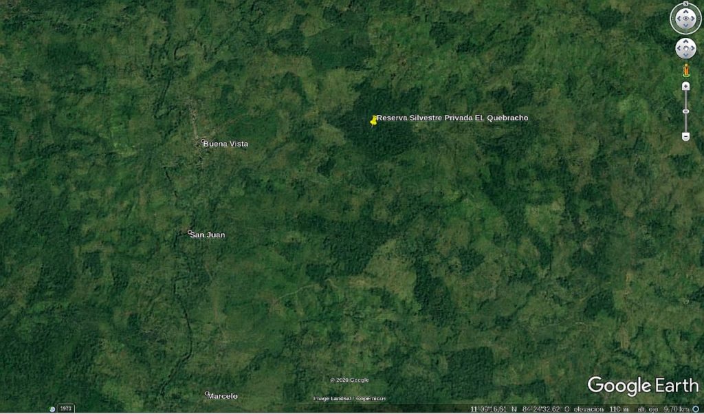 El Quebracho se extiende a lo largo de 85.71 hectáreas, unas 120 manzanas de bosque tropical húmedo, y se ubica al este de la comunidad Buena Vista, formando parte de la microcuenca del río La Pancha, en la zona de amortiguamiento de la Reserva Biológica Indio Maíz. La organización la adquirió en 1994 con el objetivo de conservar los recursos naturales, aportar a la educación ambiental y promover el turismo comunitario. En 2005, fue declarada como Reserva Silvestre Privada, es decir, que forma parte del Sistema Nacional de Áreas Protegidas del país.
